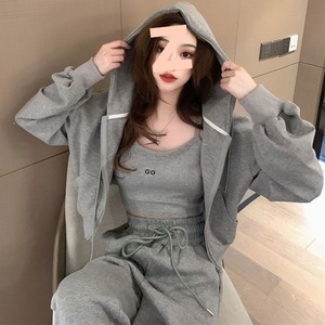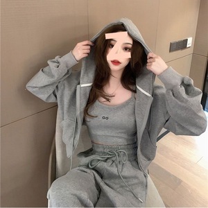 休闲运动套装女秋季新款宽松显瘦卫衣外套背心束脚长裤三件套洋气