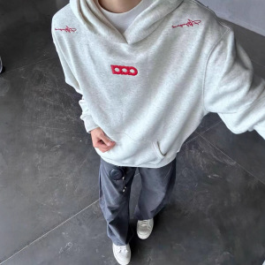 2025新款字母刺绣连帽卫衣男女春秋季高级感痞帅高街慵懒风外套潮