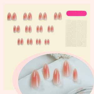 24片跨境杏仁型渐变色腮红清透气质纯欲显白ins风美甲甲片穿戴甲