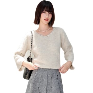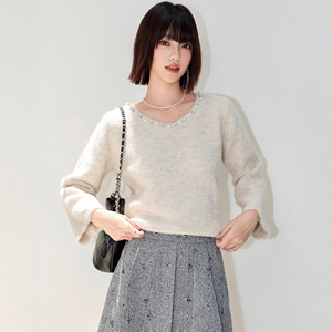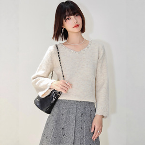 慵懒风针织衫毛衣女2025秋季新款设计感小众珍珠V领软糯别致上衣