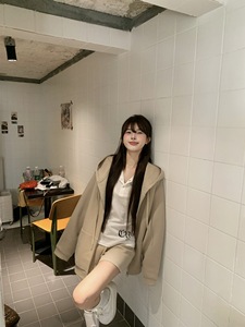 慵懒风套装咖色连帽卫衣开衫外套女早秋穿搭一整套休闲短裤两件套
