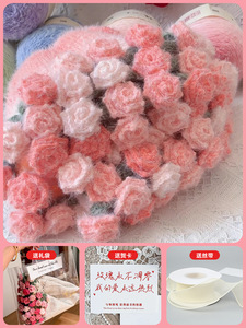 毛线钩针魔法球玫瑰花毯子手工编织diy材料包花束毯子礼物