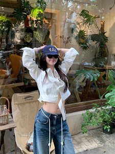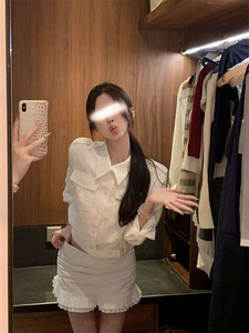 titi小姐姐【奢选天丝亚麻】短外套女秋季白色短款夹克小个子上衣