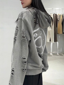高版本Ac家25年秋冬新款美式复古后背做旧字母印花拉链卫衣情侣款