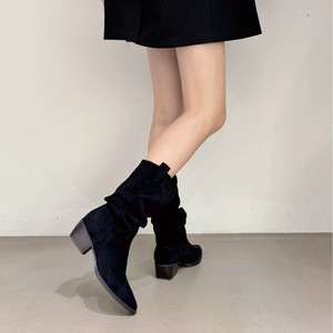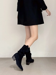 复古尖头短筒堆堆靴女鞋2025新款骑士靴西部瘦瘦靴尖头粗跟马丁靴