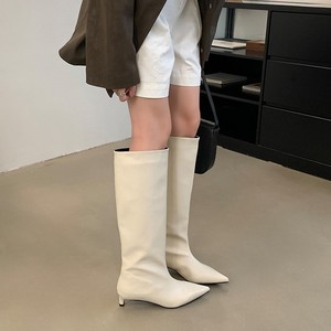 欧美风简约气质尖头高靴时尚通勤百搭纯色套筒靴子舒适猫跟女靴子