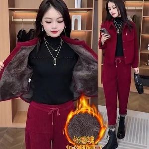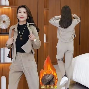 2025秋冬加绒加厚高气质套装女时尚洋气减龄宽松休闲哈伦裤两件套