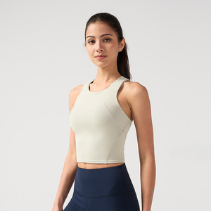 lulu瑜伽背心女圆领带胸垫健身上衣高强度防震聚拢收副乳运动背心