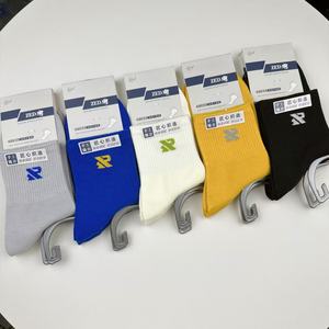 秋冬新款男士中筒袜透气吸汗时尚字母潮款学生学院风运动棉袜彩色