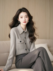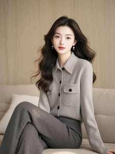 2025秋冬季穿搭一整套高级感减龄漂亮洋气气质灰色针织开衫套装女
