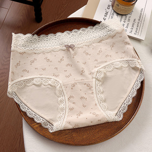 2025新款内裤女生纯棉10A抗菌全棉加长裆少女中腰蕾丝花边三角裤