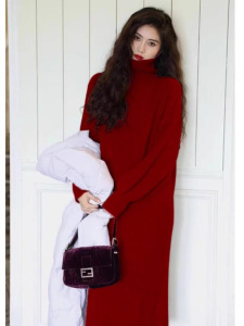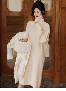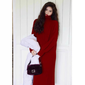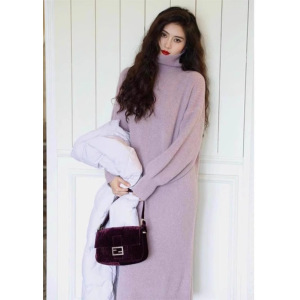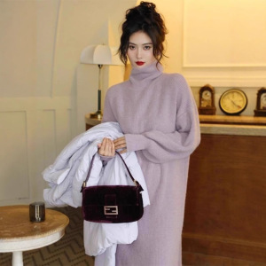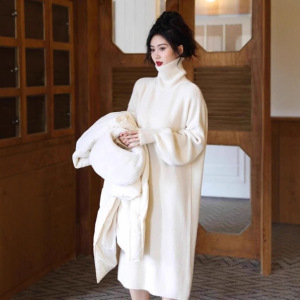 高级感连衣裙女过膝宽松长款秋冬内搭针织毛衣裙