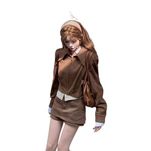 2025秋季新款仿麂皮绒今年流行复古高级感正肩外套辣妹半裙套装