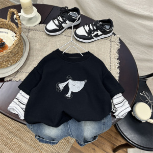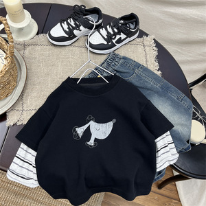 儿童长袖假两件上衣秋季新品小狗男女童潮牌卫衣宝宝中小童打底衫