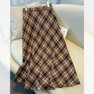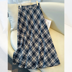 超好看格子伞裙半身裙女秋季2025新款气质复古a字裙中长百褶裙