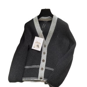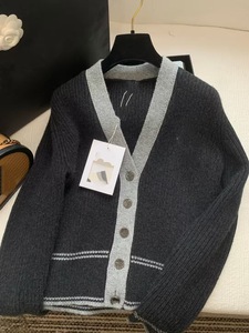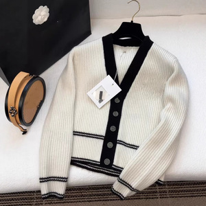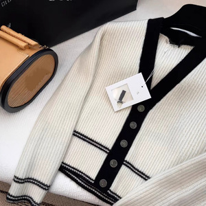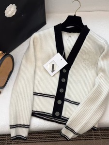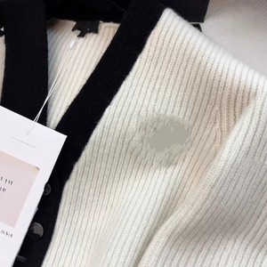 南油直供 25秋冬款时尚V领黑白撞色羊绒开衫经典胸前字母刺绣上衣