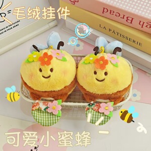 可爱卡通勤劳花篮小蜜蜂毛绒挂件批发玩偶钥匙扣包包挂饰抓机娃娃