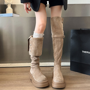 过膝长靴女2025新款秋冬单里两穿卡其色复古美拉德靴子高筒长筒靴