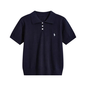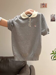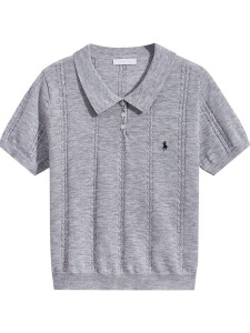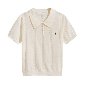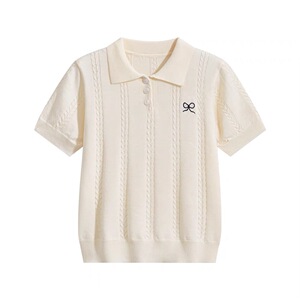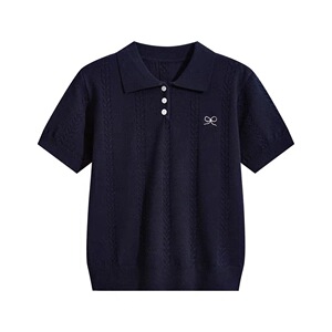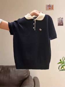 法式短袖针织衫女装高级感夏季新款韩系T恤薄款修身冰丝polo上衣