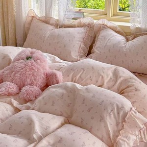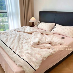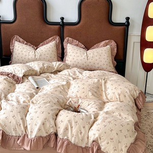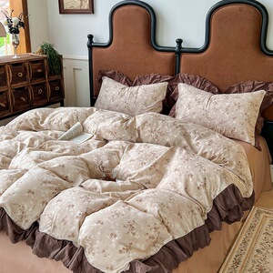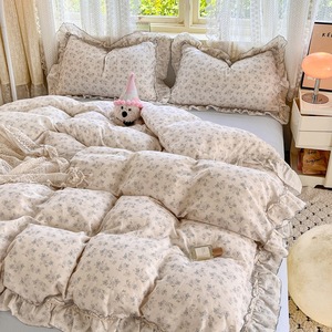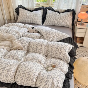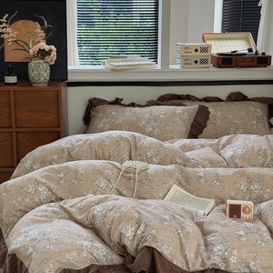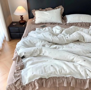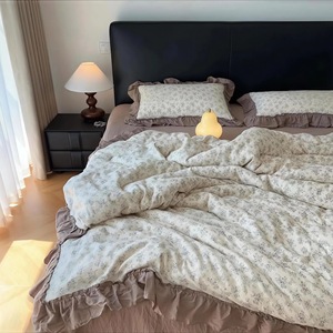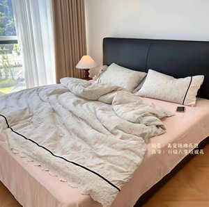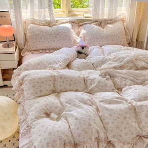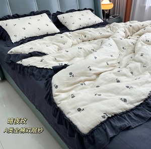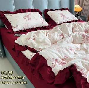2025新款法式浪漫复古花边纯棉双层纱四件套小碎花被套三件套批发