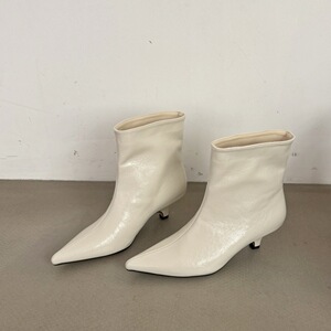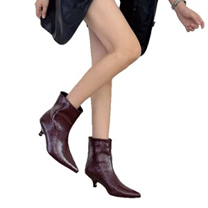 法式尖头细跟猫跟短靴女2025新款秋冬季软皮瘦瘦靴低跟短靴及踝靴