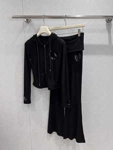 2025早秋新款Cho南油工厂美式甜辣运动风烫钻拉链外套+喇叭休闲裤