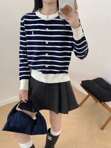 毛衣女秋冬新款韩系时尚百搭高级感条纹针织开衫宽松外套打底上衣
