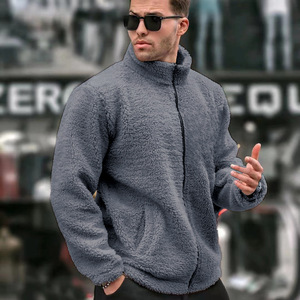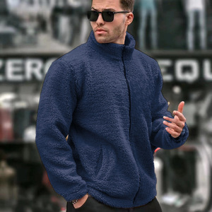 跨境2025亚马逊立领纯色上衣男式休闲时尚长袖拉链杉泡泡加绒上衣