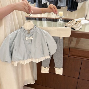 女童风衣外套2025秋装新款洋气花边拼接上衣儿童百搭打底裤两件套