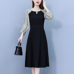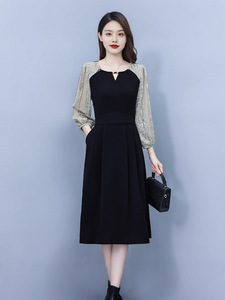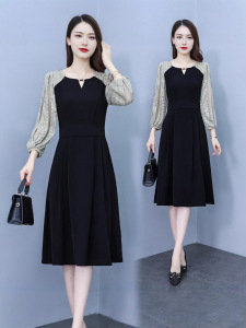 2025秋季新款拼接假两件礼服裙大码时尚连衣裙洋气裙子