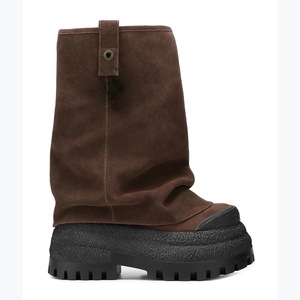 欧美外贸新款复古粗跟马丁靴女厚底防水台增高圆头套筒短靴