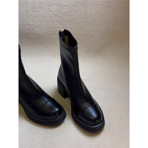 羊皮版~真皮圆头厚底切尔西靴女2025新款小众百搭显瘦中筒靴