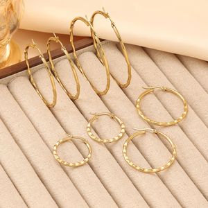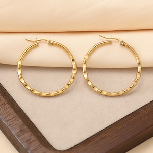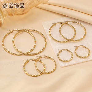 不锈钢耳环轻奢高级感耳饰十二点压花大圆圈耳环几何夸张耳圈耳扣