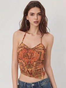 欧美跨境新款挂脖式系带时尚瑜伽服背心户外运动防震带胸垫健身衣