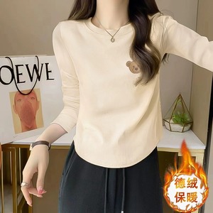 长袖T恤女秋季棉显瘦不规则设计感短款纯白色小个子打底衫上衣