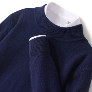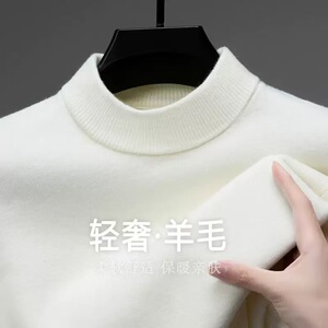 秋冬100羊毛衫男士半高领保暖针织毛衣大码休闲中领打底羊毛衫潮