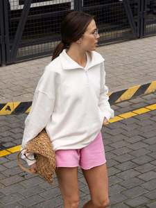 2025早秋新款纯色半拉链设计高级感卫衣女潮牌慵懒风运动百搭外套