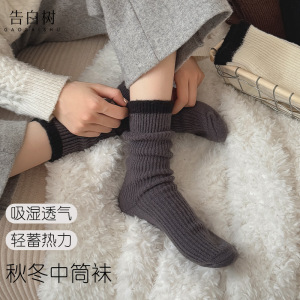 袜子女冬季新款加绒加厚保暖拼色女中筒袜子拉绒百搭女袜诸暨袜子