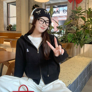 2025秋冬新款连帽卫衣温柔韩系针织衫休闲简约百搭显瘦优质毛衣女