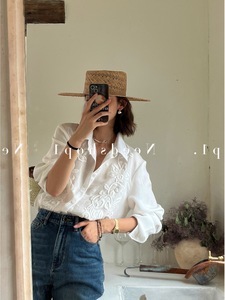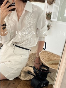 白色刺绣简约高级感宽松休闲慵懒风衬衫女2025秋季新款防晒衫上衣