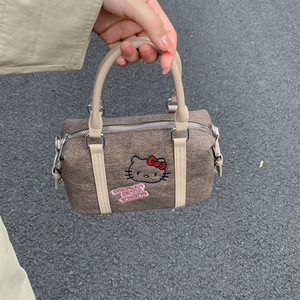 2025新款手拎波士顿包包可爱刺绣kitty猫时尚百搭复古枕头包斜挎