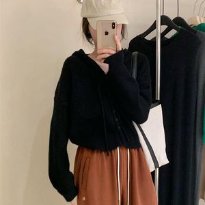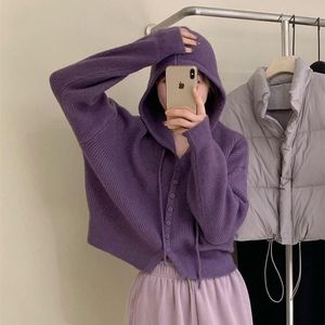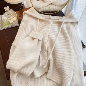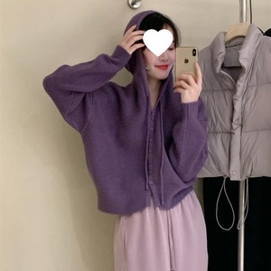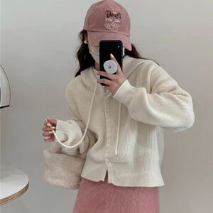 温柔风连帽针织开衫女装气质上衣宽松毛衣披肩外穿单排扣休闲卫衣