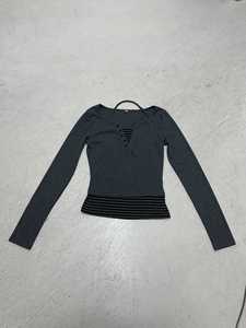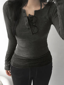 欧美撞色条纹真两件长袖t恤新品设计感内搭打底衫显瘦修身上衣