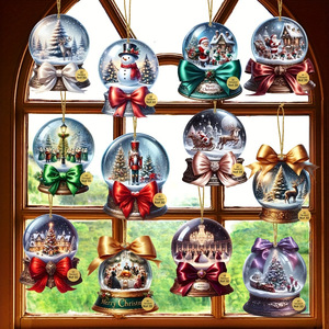跨境新品圣诞水晶球12件波希米亚风亚克力平面挂件节日家居装饰