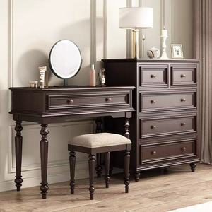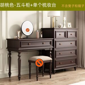 胡桃色五斗柜+梳妆台