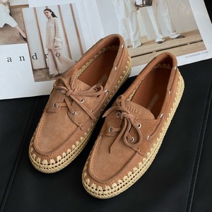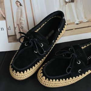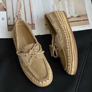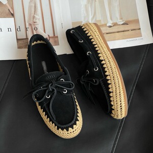 缪家2025秋冬新款复古系带头层牛拉菲草鞋舒适编制鞋面百搭女鞋