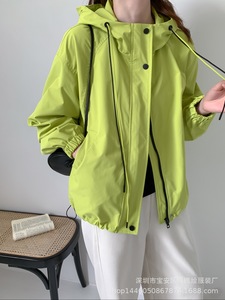 琪镌绘制糖果色连帽短外套女秋季款韩版设计感减龄冲锋衣女15600