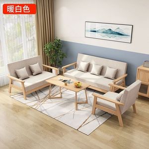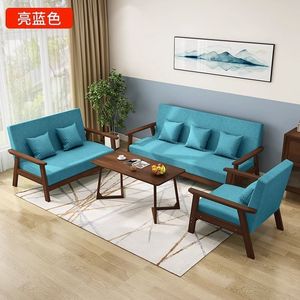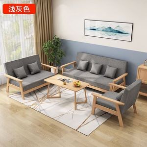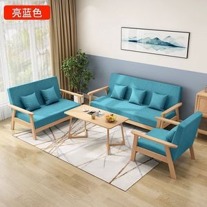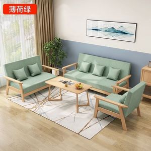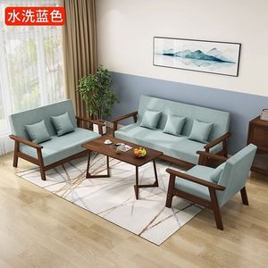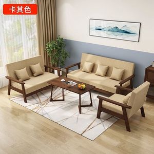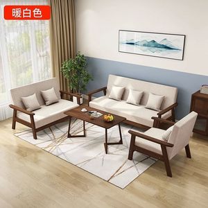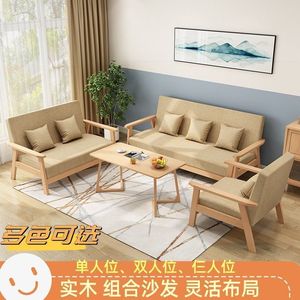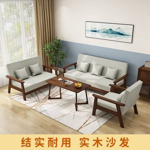 实木三人出租房小户型布艺沙发茶几组合客厅双人现代简约乌金木