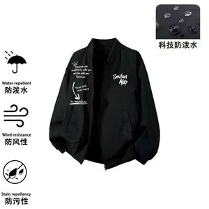 美式字母印花夹克外套拉链宽松百搭舒适棒球服男女