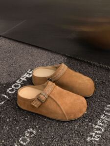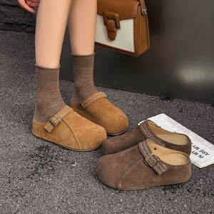 磨砂皮包头穆勒鞋女2025秋季爆款厚底英伦风吐司勃肯鞋半拖鞋潮
